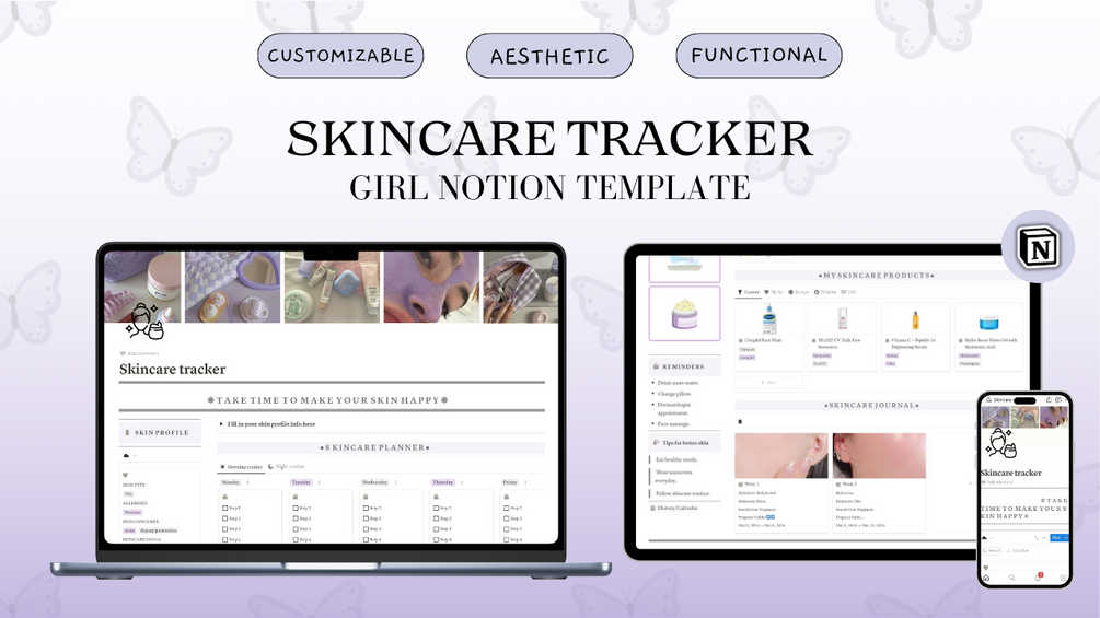 Skincare tracker | Aesthetic everyday planner | Notion template